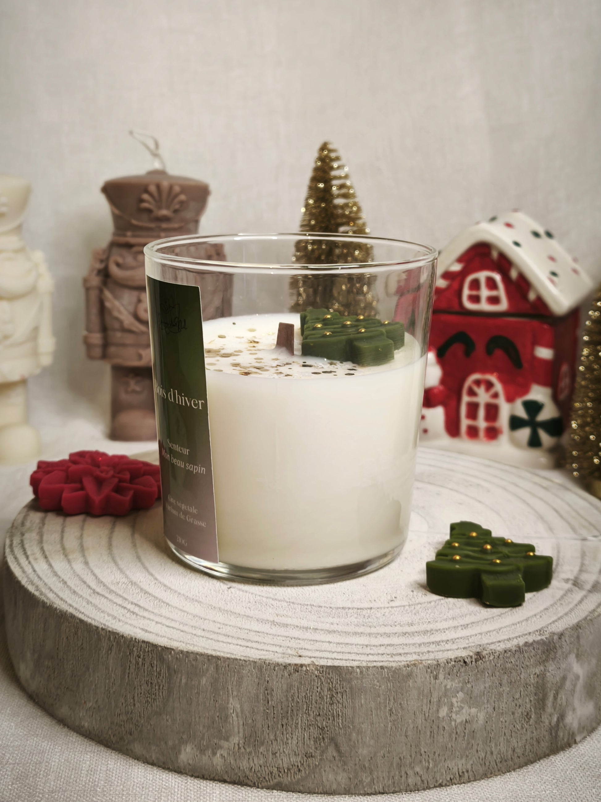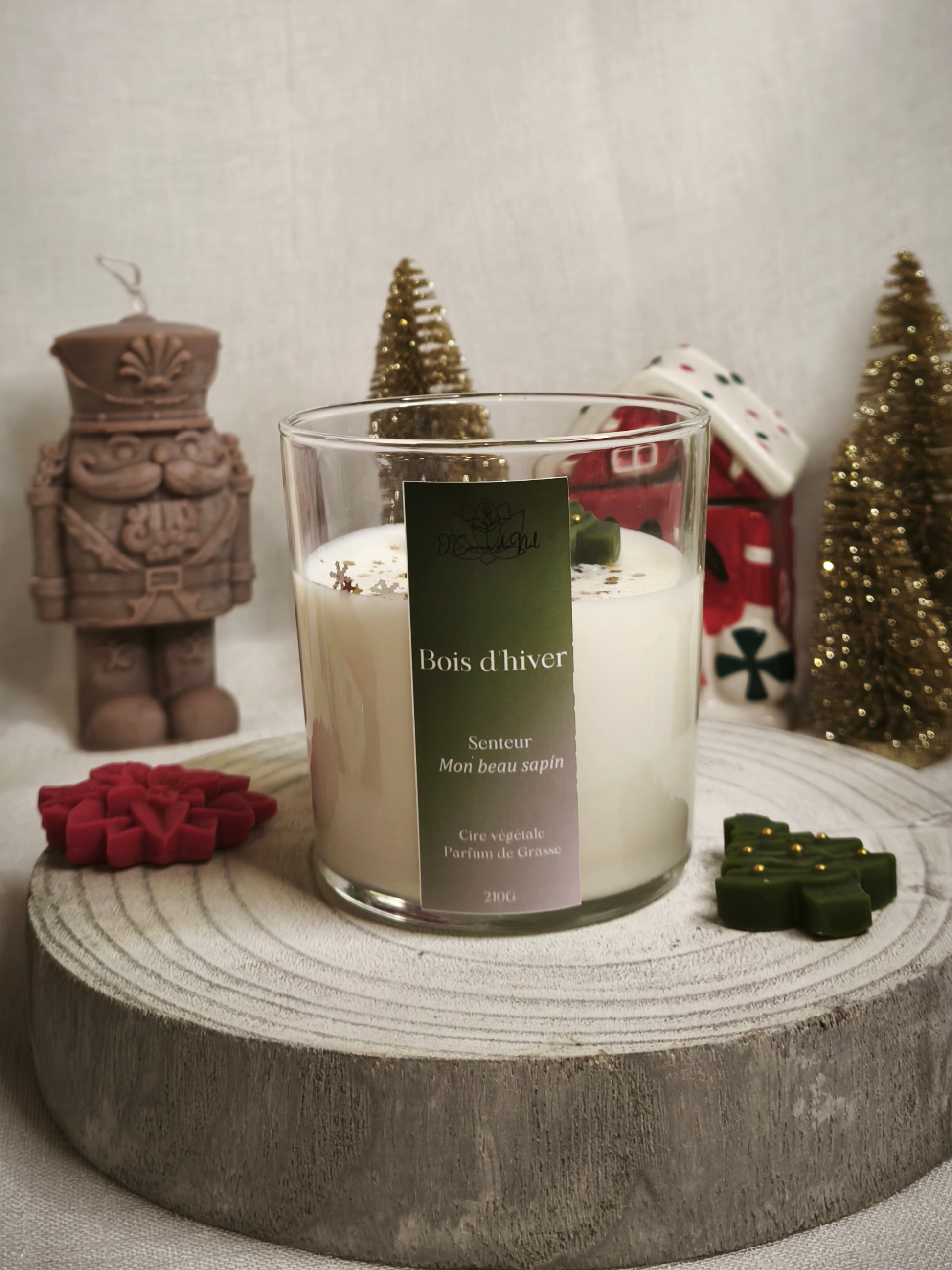 Plongez au cĆur dâune forĂȘt enneigĂ©e avec Bois dâHiver, une bougie au parfum rĂ©sineux et apaisant qui rappelle la fraĂźcheur dâun sapin de montagne.