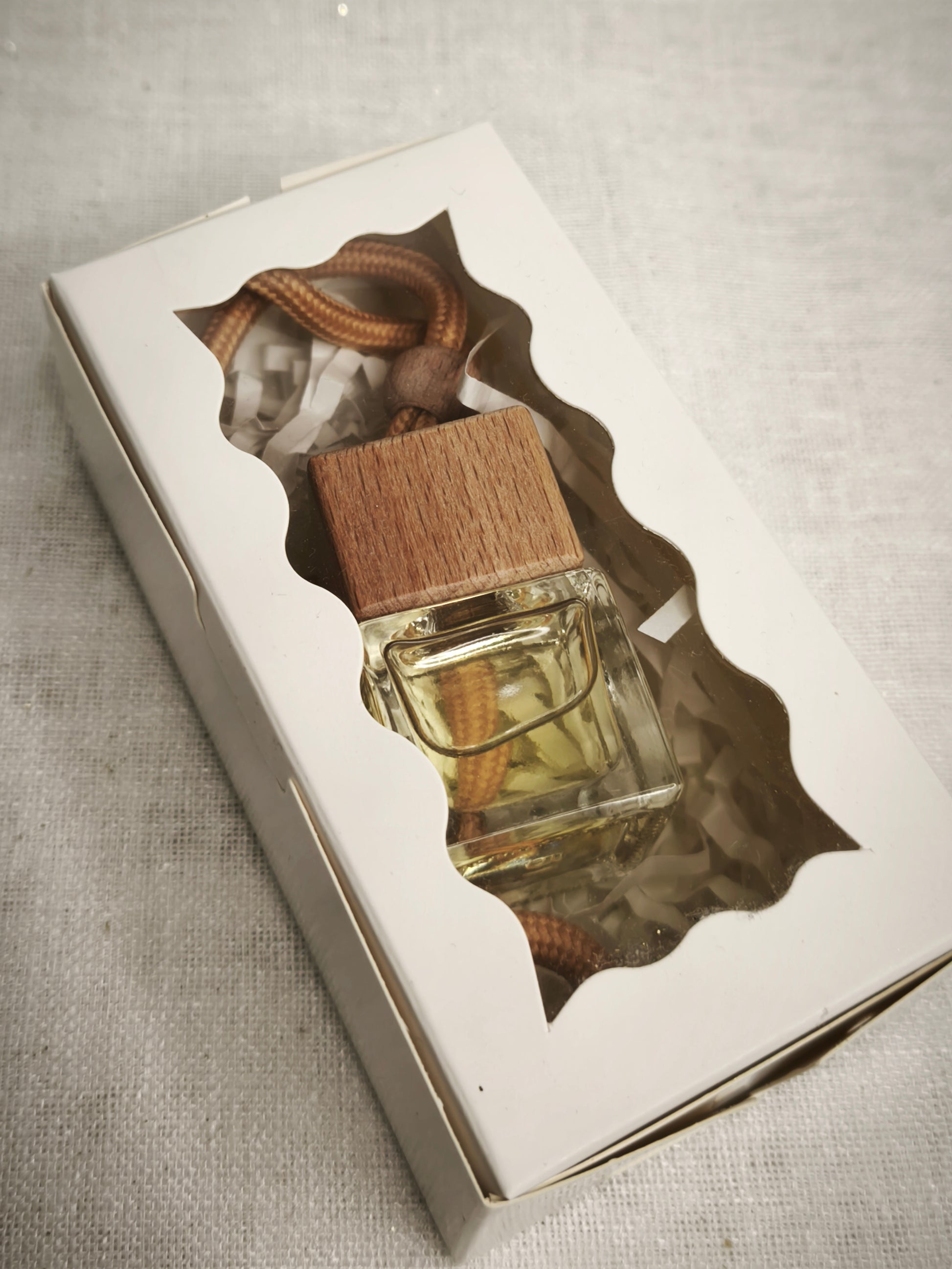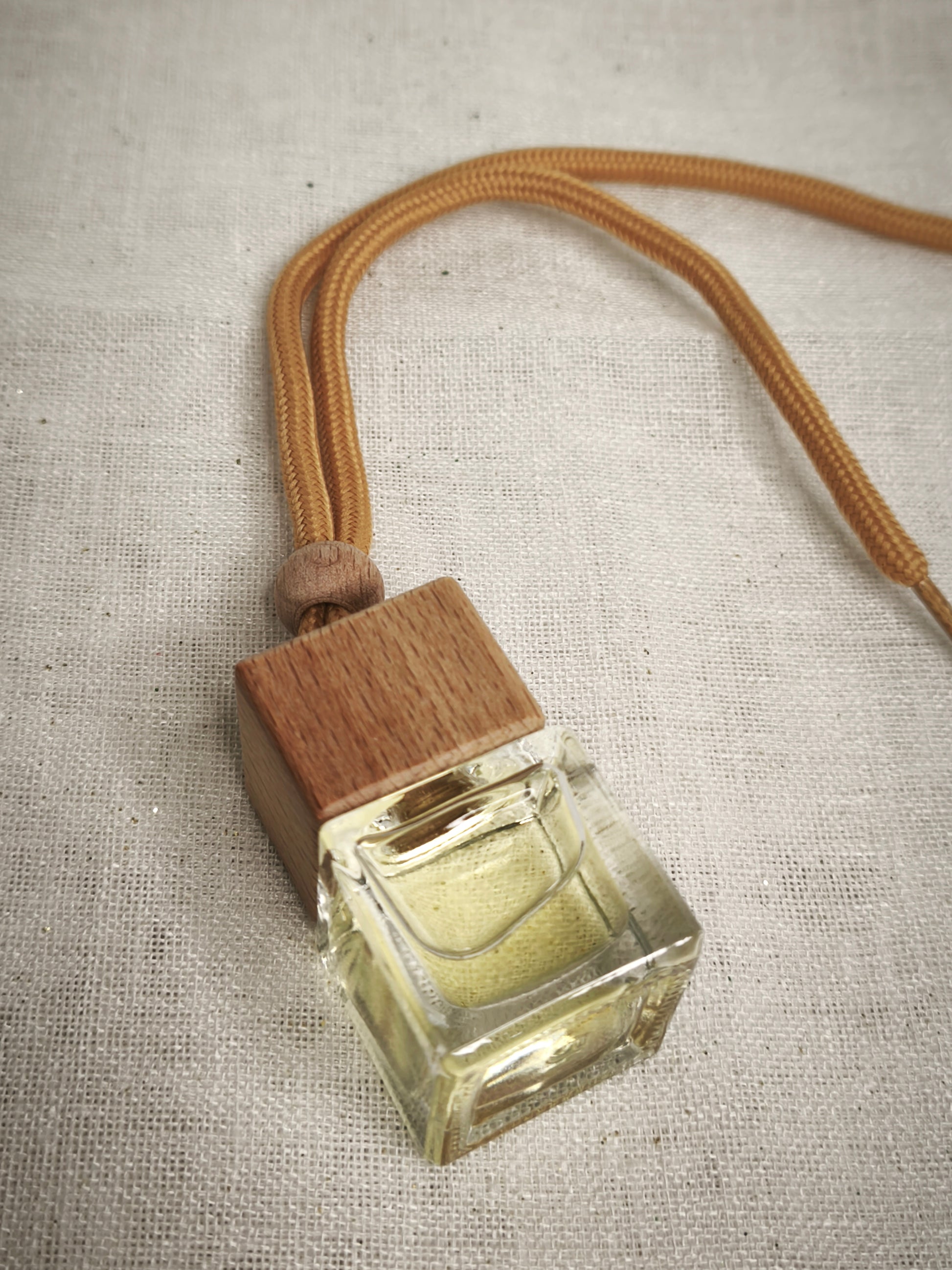 Notre diffuseur de voiture est composé d’un flacon en verre, surmonté d’un bouchon en bois naturel permettant une diffusion douce et progressive du parfum.