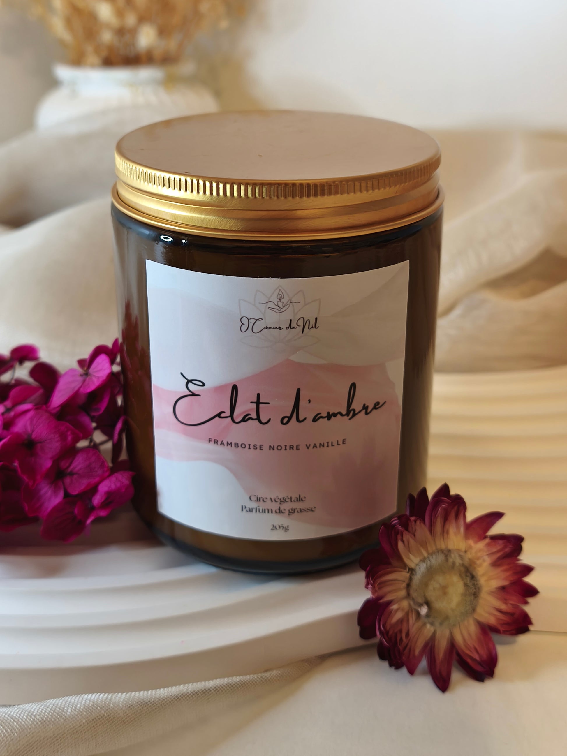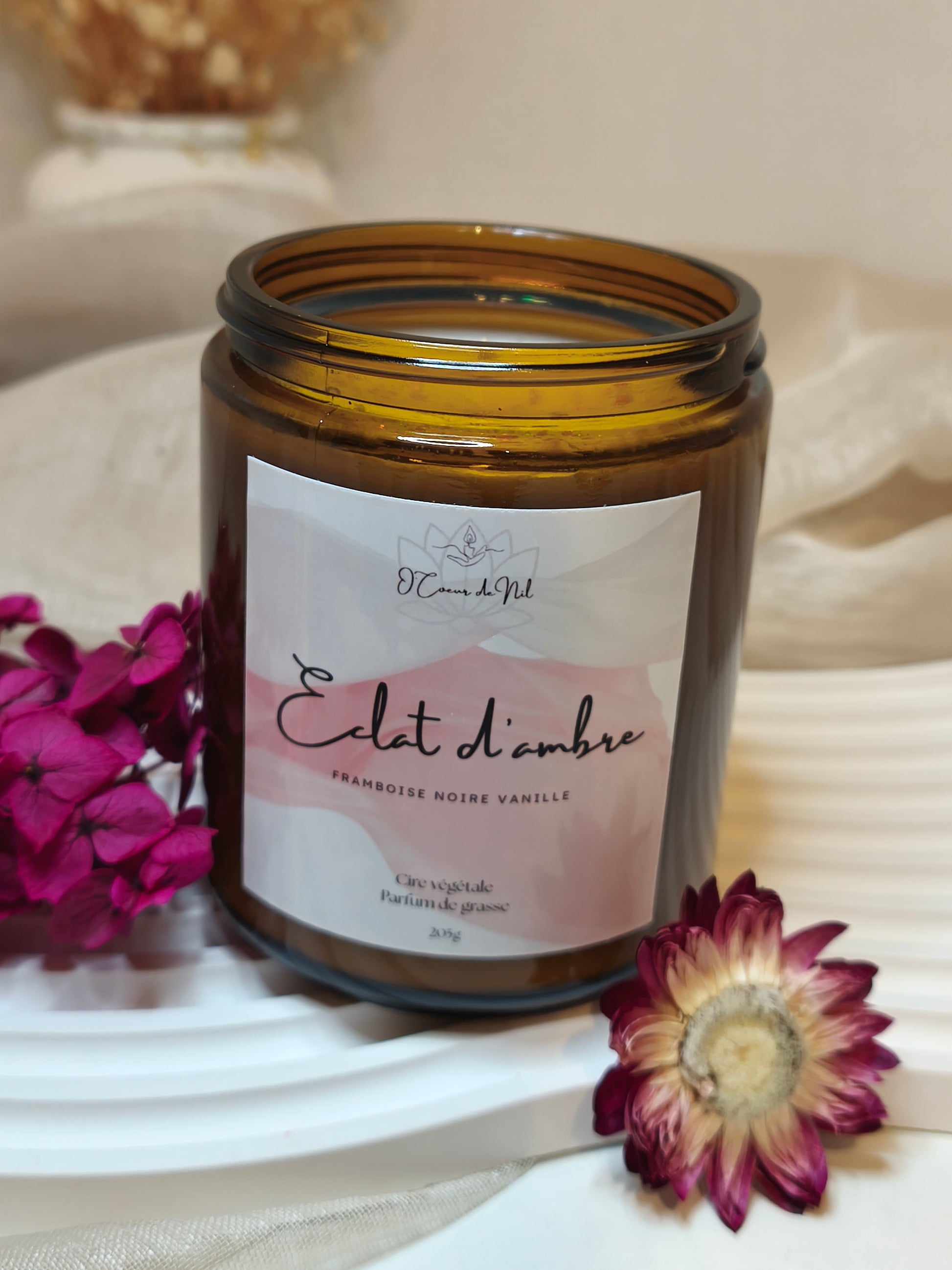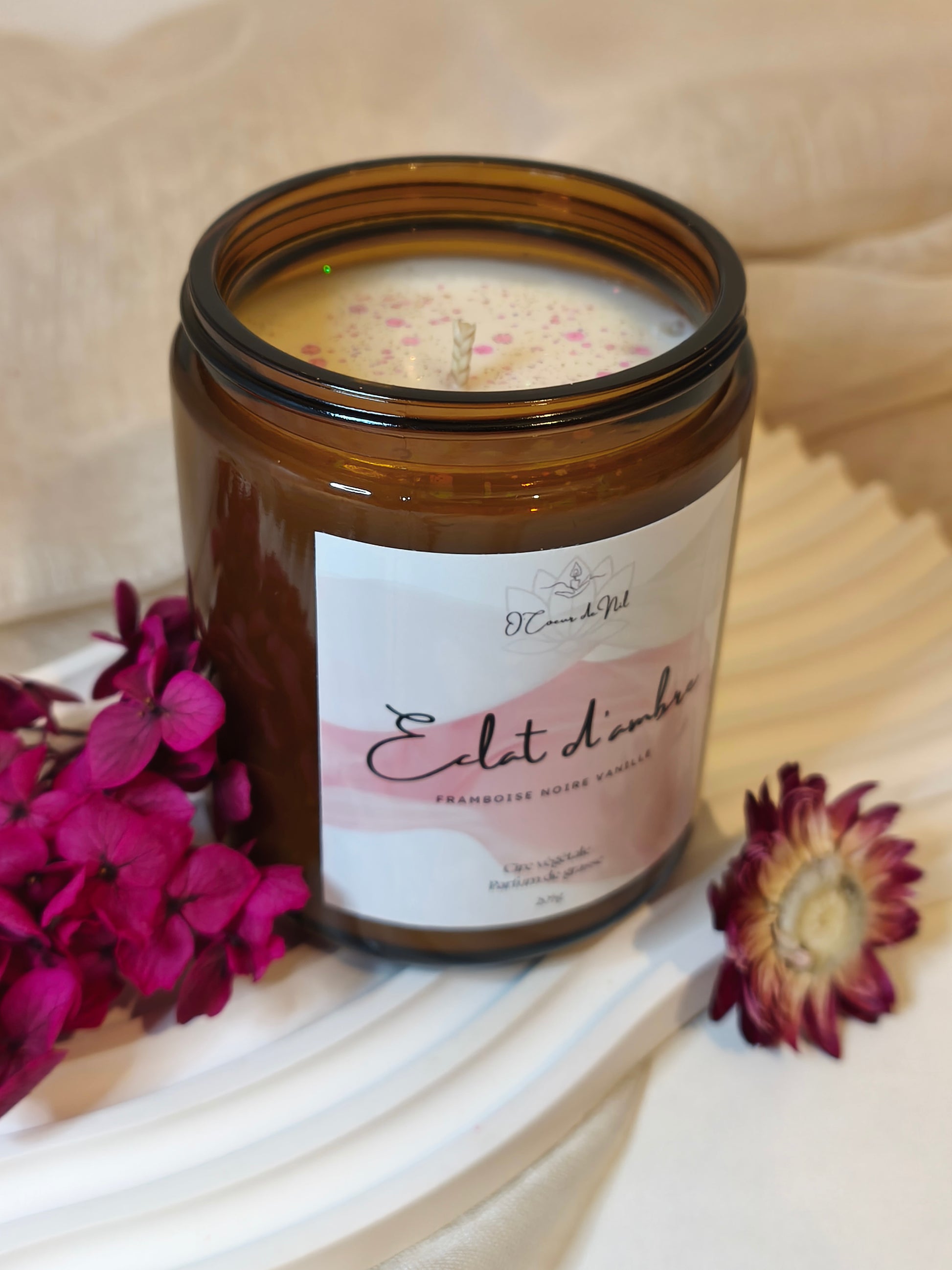 Laissez vous envelopper par la douceur chaleureuse de Éclat d’Ambre, une bougie parfumée élégante et réconfortante.