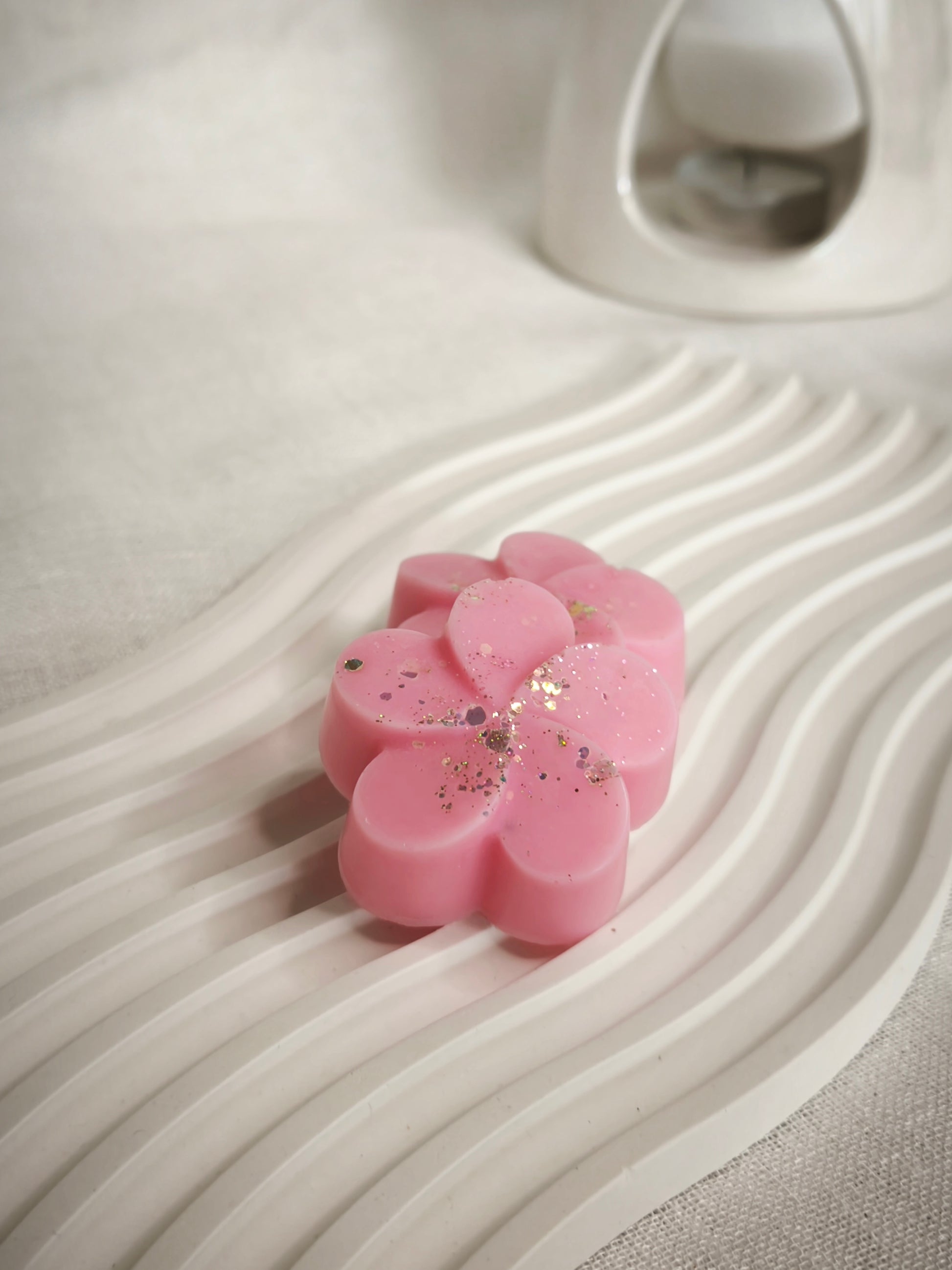 Ce fondant libère une fragrance douce, florale et légèrement poudrée, rappelant les cerisiers en fleurs. Parfait pour un instant de sérénité et de fraîcheur.