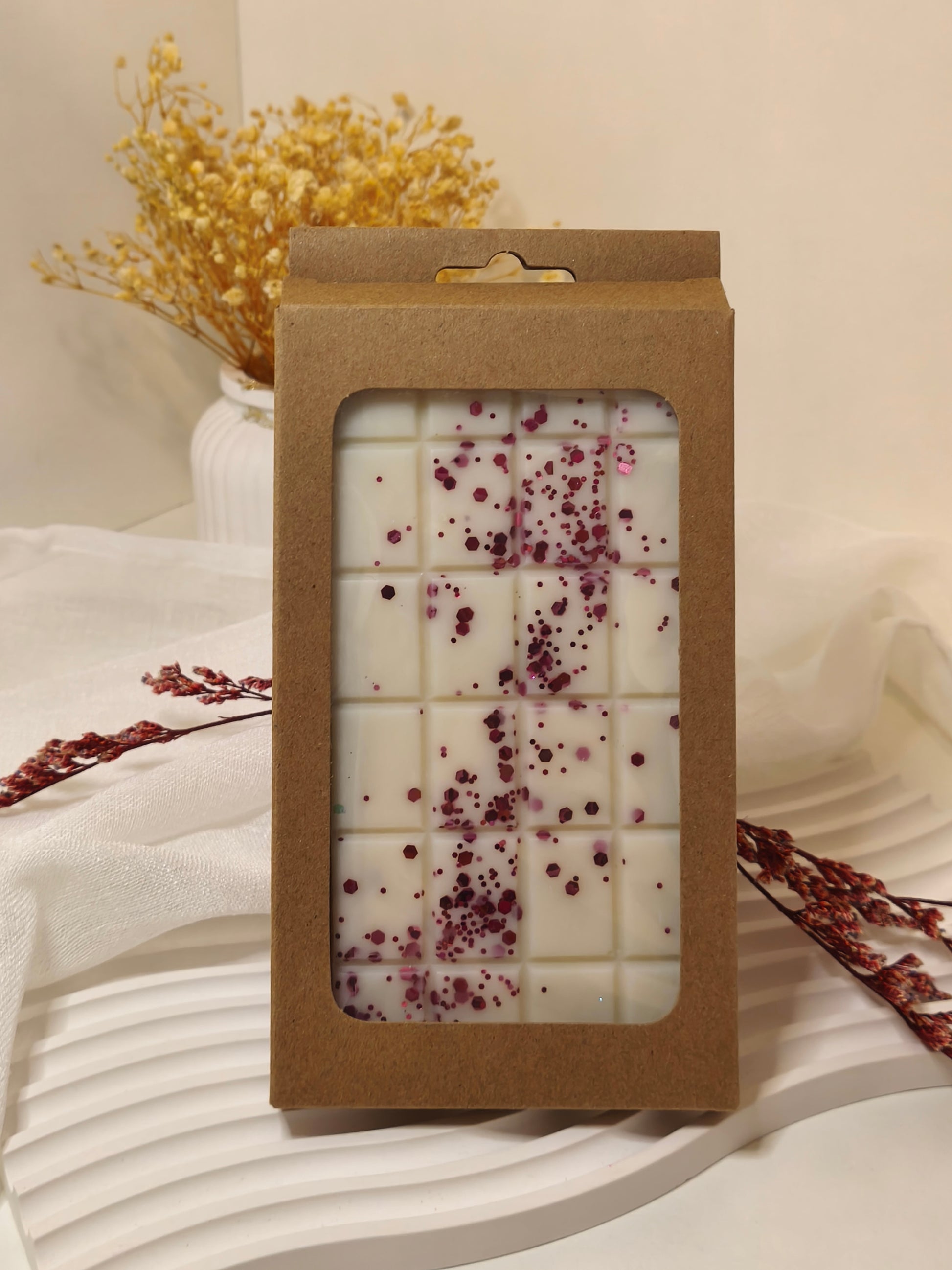Cette tablette de fondants parfumés est réalisée artisanalement et découpée en carrés sécables pour une utilisation simple et modulable selon l’intensité souhaitée.